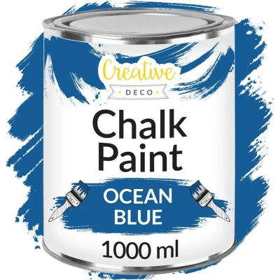 Creative Deco Ocean Blue Chalk Paint for Furniture 1L Deep Matte & Chalky Finish Smooth Touch Interiors Quick Dry Navy Wood Renovation