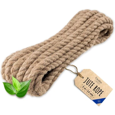 THICK & DURABLE – Made from high-quality jute fibres, this rope stands out for its strength and resistance to mechanical damage. The 14 mm thickness provides excellent stability, making it ideal for a wide range of craft and decoration projects. The length can be adjusted to your needs – the rope is supplied in 5 m sections, offering great flexibility when planning your projects. Due to weather conditions, the rope length may slightly vary. Such variations are normal and do not constitute grounds for a complaint. MULTI-PURPOSE – Our rope can be used in many ways: for a cat tree or cat house , as a garden railing , climbing rope , stair handrail rope , boat rope or as a decorative element in your garden. It is perfect for arts and crafts, DIY, home improvement and decoration. Get inspired by ideas online or create your own design to match your needs and style. EASY TO USE – The rope comes wound for convenient storage and allows you to start working straight away. Available sections