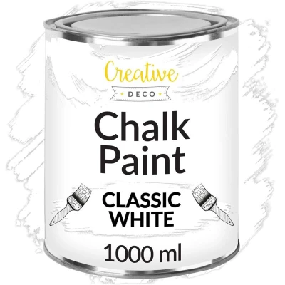 Creative Deco White Chalk Paint for Furniture 1L Snow Matte & Chalky Finish Smooth Touch Interiors Quick Dry Wood Renovation Decoration