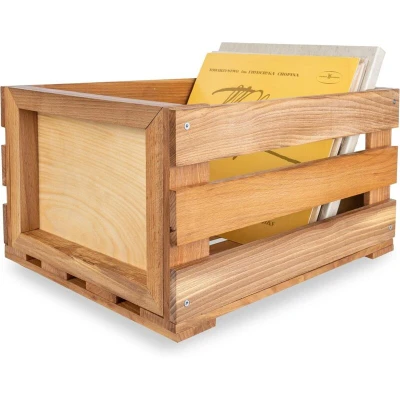 Creative Deco Wooden Box for Vinyl Records 46 x 36 29 cm (+/ 1 cm) Storage Storing Natural Beech Wood Up to 80 Discs, Fruit, Vegetable, Wine, Toys
