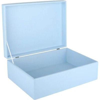 Creative Deco XL Blue Wooden Storage Box 40 x 30 14 cm (+/ 1 cm) with Hinged Lid Gift for Christmas Xmas Wood Keepsake Memory Craft Chest
