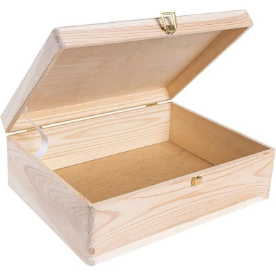 PERFECT SIZE – With external dimensions of 40 x 30 x 14 cm and internal dimensions of 37.5 x 27.5 x 9.8 cm, this wooden box is ideal as a decorating box, photo box, treasure chest, tea box or gift box for birthdays, weddings, christenings or baby keepsakes. Perfect for versatile use! SUITABLE FOR ALL AGES – Rounded, non-sharp edges ensure safe use for all ages. This box is ideal for storing documents, valuables, toys, clothes, accessories and jewellery, while also serving as a decorative interior piece. HIGH QUALITY – Made from lightweight wood with 1 cm thick walls and a 3 mm plywood base. The natural scent of pine wood from the Carpathian forests reflects the quality of this certified, durable and environmentally friendly product. ORGANISATION – Customise this small chest according to your needs. Use paint to create your own decorative box and add a personal touch to your storage space. MADE IN THE EU – Our products are manufactured in the European Union in compliance with the