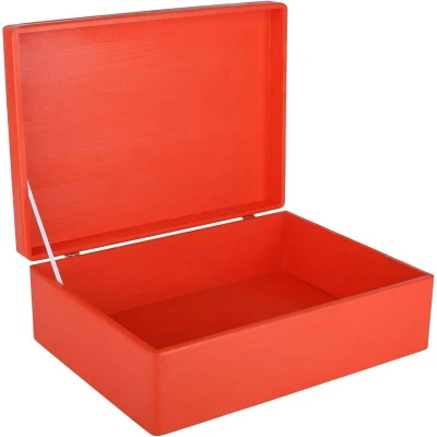 Creative Deco XL Red Wooden Storage Box 40 x 30 14 cm (+/ 1 cm) with Hinged Lid Gift for Christmas Xmas Wood Keepsake Memory Craft Chest