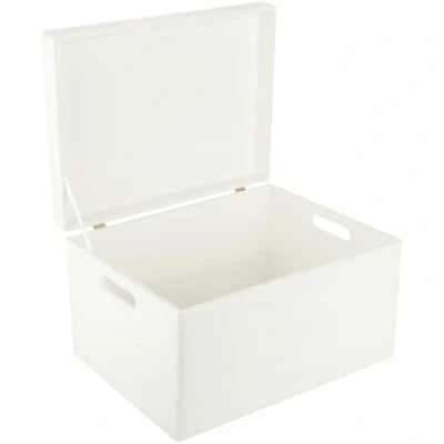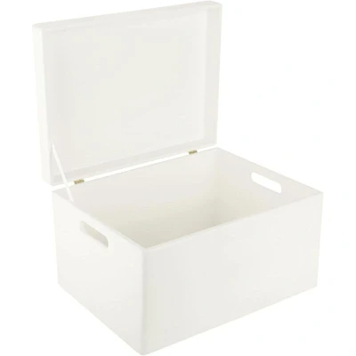 Creative Deco XXL Large White Plain Wooden Storage Box Chest 40x30x24 (+/ 1 cm) Hinged Lid & Handles Gift UNSANDED Wood Keepsake Memory Craft