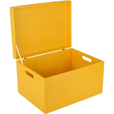 Creative Deco XXL Large Yellow Wooden Storage Box 40 x 30 24 cm (+/ 1 cm) with Hinged Lid & Handles Gift for Christmas Xmas Wood Keepsake Memory