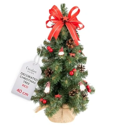 Creative Home Mini Red Artificial Christmas Tree with Stand Size 40 cm Miniature Little Xmas Small Cone Branches Realistic Decoration for Tabletop Desk Office Indoor & Outdoor