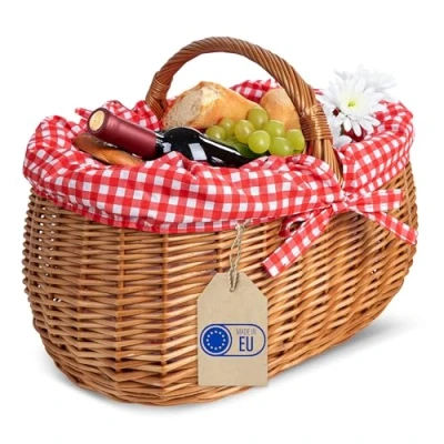 ManoManoHIGH QUALITY – This Creative Home picnic basket is made from high-quality natural wicker. Its handmade weaving ensures exceptional strength, while the red checkered trim adds a decorative touch. The ties can be attached quickly and easily, and they are removable and washable for effortless maintenance. Maximum capacity: 5 kg. VERSATILE – This wicker basket is not only ideal for picnics, but also perfect for shopping, carrying goods, storing toys, magazines, plants, or even as a firewood basket. It adapts elegantly and practically to your everyday needs. USEFUL FOR THE HOME – Its natural look and brown colour make it both an elegant and functional accessory that fits seamlessly into any interior. It can also be used as a transport basket, gift basket, bread basket, or Easter basket. ECO-FRIENDLY SHOPPING – Reduce your use of plastic bags with this 100% natural wicker basket, an ecological and durable alternative for your daily shopping. MADE IN THE EU – This basket is manufactured