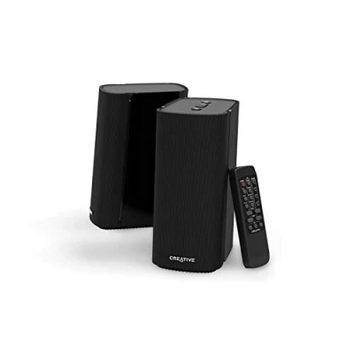 CREATIVE T100 2.0 Compact Hi Fi Desktop Speakers, up to 80W Peak Power with Bluetooth 5.0, Optical in, AUX Wide Soundstage and Audio Clarity Bass Control for Computers Laptops (Black)