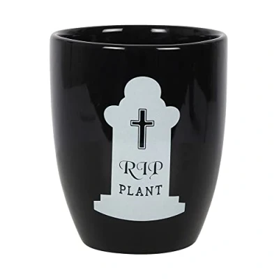 CREEPY DESIGN: Make a statement with this creepy black ceramic gothic RIP plant pot, featuring a tombstone silhouette and the humorous text "RIP Plant" – a unique and spooky design that's sure to turn heads and spark conversations! HIGH-QUALITY CERAMIC MATERIAL: Crafted with premium ceramic, this stylish plant pot is not only a novelty decoration but also a durable and long-lasting home for your plants, ensuring they stay safe and secure with its robust build. VERSATILE USE: Perfect for housing a variety of plants like succulents, cacti, ferns, or even faux plants, this versatile pot is suitable for both indoor and outdoor settings, making it a great addition to your garden, patio, or home decor. PERFECT FOR GARDEN DECOR: Bring a touch of the eerie and dark side to your garden with this gothic-inspired plant pot, which fits seamlessly into various garden styles, from gothic to modern or eclectic landscapes, adding character and drama. IDEAL GIFT: This heartwarming and haunting gift is perfect for friends and family who have a taste for the spooky and the macabre. Give the gift of dark charm with this quirky, one-of-a-kind plant pot that is bound to impress and delight., Manufacturer: Something Different