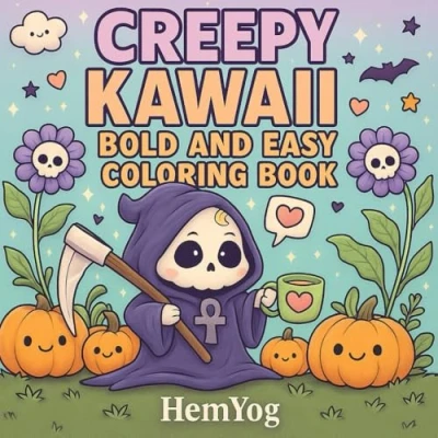 Creepy Kawaii Bold and Easy Coloring Book for Teens, Adults: Fun Cute Spooky Pages with Big Lines Coloring: Pastel ... Line Art