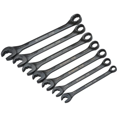 General description The Crescent X6™ Metric Open End Ratcheting Spanners are designed for efficiency and ease of use. Their smooth profile allows for more torque to be comfortably applied to fasteners, making them an essential tool for any DIY or professional project. The ratcheting open end feature enables users to turn nuts and bolts without needing to remove the spanner from the fastener, enhancing productivity. Technical specifications Number of pieces: 7 Sizes included: 8mm, 10mm, 12mm, 13mm, 14mm, 15mm, 17mm Fastener types compatible: Hex, Square, 12 Pt., E-Torx®, Rounded Hex, Spline