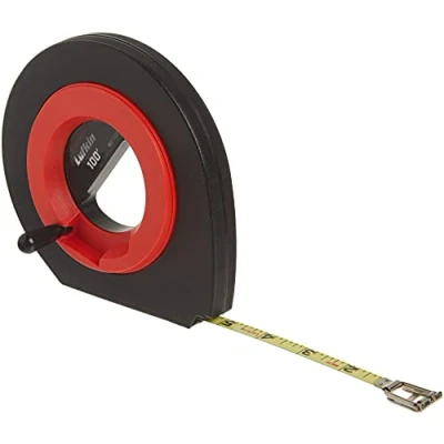 3/8" X 100' Hi-viz Orange speed winder steel long tape measure Impact-resistant, attractive, self-standing case Heavy duty Yellow clad blade protected by an abrasion resistant coating Extends, Rewinds in less time than conventional long steel tapes Easy-to-read bold black markings, Weight: 1.42 pounds, Manufacturer: Cooper Hand Tools