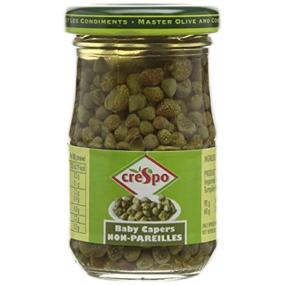 baby capers in salted water 10 x 90g the crespo brothers started producing olives over 70 years ago crespo is the no.1 brand of olives in the uk. crespo has an unrivalled reputation. Ingredients: Capers, water, vinegar, salt