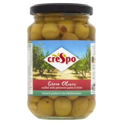 Crespo Green Olives Stuffed with Pimiento, 354 g, Pack of 8