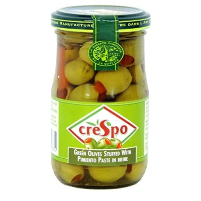 Crespo olives have a 3 year shelf life! Olives from Spain 8 x 354g Green Olives Stuffed With Pimiento Paste In Brine Great for snacking! Crespo Olives come in many varieties from green, black, stuffed and marinated! Pasteurised