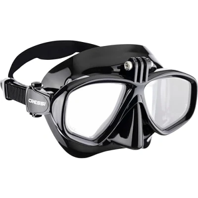 CRESSI Action Cam Mask Black/Black Unisex Reduced Volume Dive with Mount, Black/Black, One Size