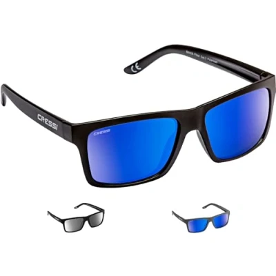 CRESSI Bahia Floating Sunglasses Men's Polarized Sunglasses, Black Mirrored Lens Blue, One Size