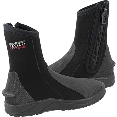 6 mm Neoprene boots suitable for any kind of water sports to keep the feet warm. Ideal for Scuba Diving and for other underwater activities. PHS - Protective Hard Sole that protects the feet against sharp rocks. A strong non-slip molding covers the entire sole. The back of the heel has a special design that fits perfectly with open heel fins for scuba diving. Both the toe and the heel are reinforced with long-lasting rubber and provide protection against wear and tear. Made from soft, double-lined Neoprene. Practical zip from the sole to the ankle, making them easy to slip on and off.