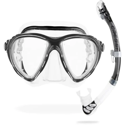 Ultimate Diving Comfort: Embrace unparalleled comfort with the Cressi Big Eyes Evolution Mask, featuring a high seal silicone skirt for a snug fit. This scuba diving mask adult set provides exceptional comfort for snorkelling and scuba enthusiasts Superior Underwater Vision: Enhance your underwater adventures with the mask's inclined lenses, providing 25% increased visibility. Ideal for those seeking a prescription snorkel mask, this swimming mask adult set brings marine life closer to you Italian Craftsmanship Excellence: Proudly made in Italy, the Cressi mask showcases premium materials for longevity. This snorkel mask adult set suits passionate divers, ensuring reliability across various aquatic environments Innovative Secure Fit: The exclusive Cressi system features a unique headband design for superior flexibility and fit. This mask and snorkel set adult ensures secure placement, allowing you to enjoy intense water activities with confidence Versatile Water Sports Use: Whether you're into diving or recreational swimming, this snorkel set adults kit adapts to your needs. The Cressi mask enhances your underwater experience, making it a must-have in any professional diving mask collection