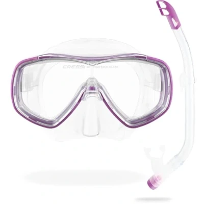 Cressi DM1010134 Ondina VIP Jr Mask Snorkeling Combo Set (Made in Italy), Transparent/Pink, One Size