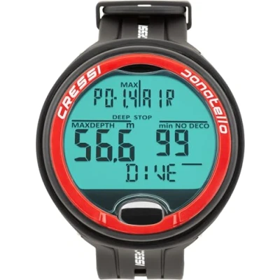 Cressi Donatello Adult Unisex Professional Underwater Wrist Computer for Diving in Air/Nitrox and Apnea, Black/Red, One Size