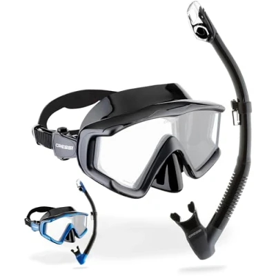 Mask with high quality high seal silicone facepiece for a comfortable and perfect fit. The structure of the facepiece is designed and manufactured with differentiated stiffness for greater resistance to the wide field of vision. Curved dry snorkel made of soft materials with a floating mechanism that instantly closes when submerged to prevent water from entering the mouthpiece either accidentally or intentionally tube with an enlarged elliptical section to increase comfort during inhalation and exhalation. Cressi is a family-owned company that has been passionately developing water sports products since 1946