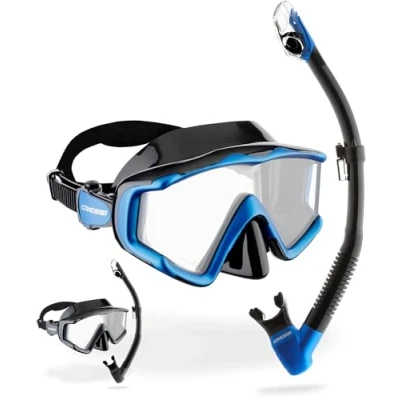 Mask with high quality high seal silicone facepiece for a comfortable and perfect fit. The structure of the facepiece is designed and manufactured with differentiated stiffness for greater resistance to the wide field of vision. Curved dry snorkel made of soft materials with a floating mechanism that instantly closes when submerged to prevent water from entering the mouthpiece either accidentally or intentionally tube with an enlarged elliptical section to increase comfort during inhalation and exhalation. Cressi is a family-owned company that has been passionately developing water sports products since 1946
