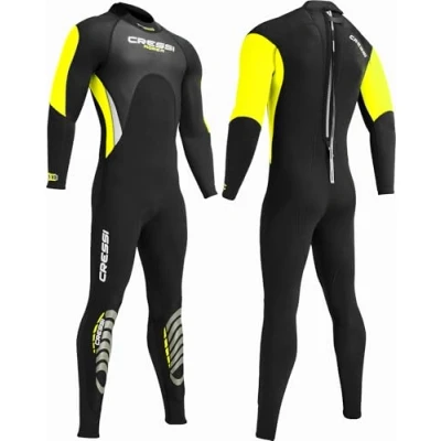 Cressi Men's Morea Man 3mm Premium Neoprene Full Length Wetsuit, Black/Yellow/Silver, XL UK