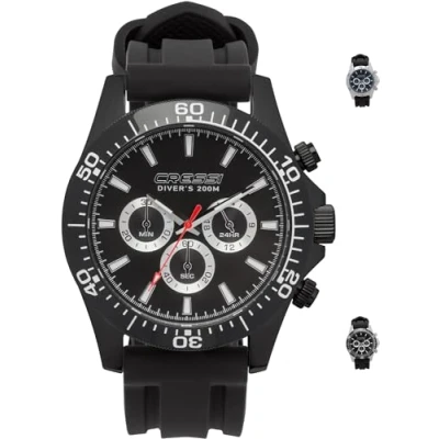 Cressi Nereus Watch Sport Quartz Analog Waterproof 200 Mt with Chronograph, Black, One Size