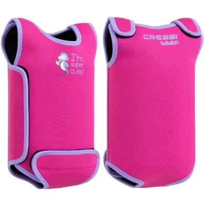 This infant/baby warmer has been constructed with neoprene which warmth and sun protection to the wearer on covered parts. Keeps children warm when exposed to aquatic environment. Positively buoyant which assists with back fl otation for survival breathing training. Easy access for use with cressi swim diapers. Kid safe but is not a life saving device. should always be used under adult supervision.