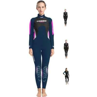 Cressi Women's Morea Lady All in one 3mm Premium Neoprene Full Length Wetsuit, Bleu/Grey/Silver, XS UK