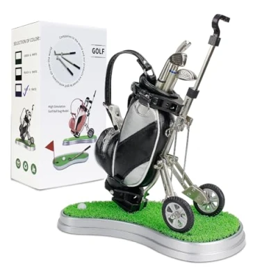 [Practical Gadget]:This compact golf bag Pen Holder design keeps your workspace tidy while doubling as a stylish storage solution. All components fit neatly inside, and the included zipped compartment is perfect for storing small trinkets or stationery. [Multi-Functional Pen Set]:Enhance your desk with this unique pen holder that includes three pens designed to look like golf clubs. Each pen features blue, red, and black ink—ideal for note-taking, marking documents, or adding a sporty touch to your everyday writing. [An Ideal Gift for Golf Lovers]:Whether for birthdays, Christmas, or a secret Santa, this golf-themed set makes a memorable and light-hearted gift. Perfect for golf fans and office workers alike, it combines practicality for a present that stands out. [Playful yet Functional Design]:Featuring a realistic cart handle and smooth-rolling rubber wheels, this desktop accessory adds a touch of golf course charm to your workspace. Compact but cleverly designed, it serves as both a useful organiser and a fun decorative gadget for any desk. [Refined Desk Accessory]:Crafted from robust zinc alloy and quality PU leather, this multi-pen holder balances durability with elegant styling. An excellent choice as a Christmas gift for your brother or an office present for men who appreciate refined and unique desk gadgets.