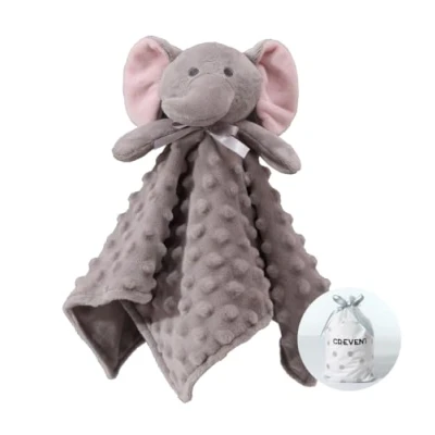 CREVENT Cozy Plush Baby Loveys for Boys and girls, Mink Dot Front + Fleece Backing with Animal Face, Comforter Cuddle Blanket,Great Gifts Birthday Shower(Grey Elephant)