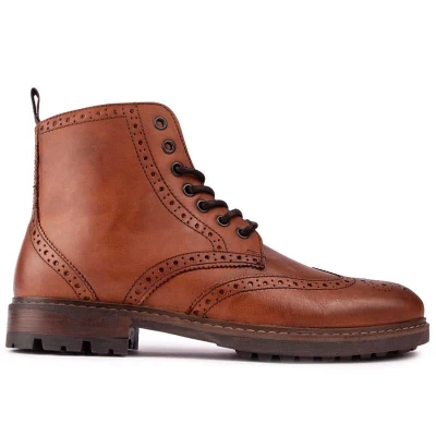 Mens tan Thomas Crick nesser boots, manufactured with leather and a synthetic sole. Featuring: brogue detail, 7 eyelets, stitched welt, leather upper and cleated sole.