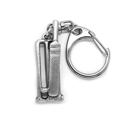 Cricket Bat Ball Stumps Push Gate Keyring in a burlap pouch