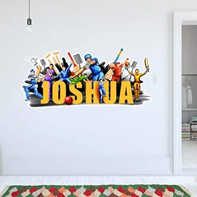 Cricket Players Personalised Name Wall Sticker Kids Bedroom Art Decal Mural (60cm Width x 30cm Height)