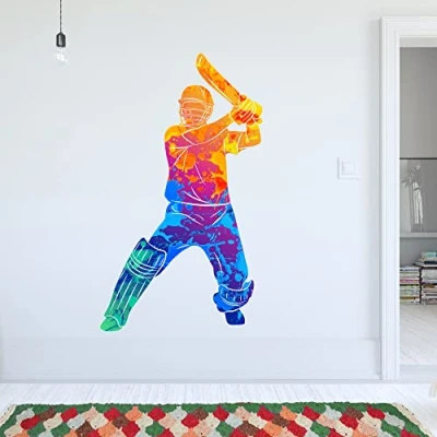 Cricket Wall Sticker Multicolour Paint Splash Player Sports Art (180cm Height x 90cm Width)