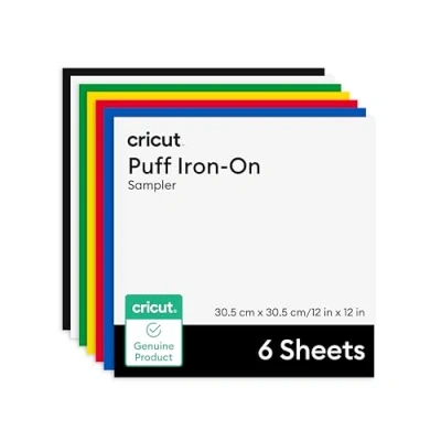 6 sheets, 30.5 cm x 30.5 cm (12 in x 12 in), in black, blue, green, red, white, and yellow Add a dynamic raised effect: press your design onto your blank and watch it transform when heat is applied. Duradero: resiste múltiples lavados. Designed for your safety: complies with the Consumer Product Safety Improvement Act (CPSIA), free of lead and phthalates.