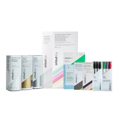 A collection of materials and accessories to explore the capabilities of your cricut joy machine Make quick personalised greeting cards with cricut joy insert cards Create removable decals, labels and stickers Wear your creativity on your clothing with cricut joy smart iron-on Bundle includes: 24x insert cards, card mat, 5x smart vinyl sheets (30cm), 1x smart vinyl roll (1.2m), transfer tape (1.2m), 4x writeable vinyl sheets (33cm), 10x smart sticker cardstock sheets (30cm), 3x fine point pens, 4x xtra fine point pens, 1x smart iron-on (61cm)