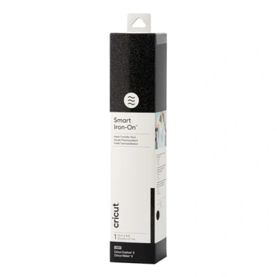 One roll of CricutSmart Glitter Iron On in Black, 2.7 m (9 ft) Works without a cutting mat – just load and go! Outlasts 50+ washes! Cuts beautifully and weeds easily Compatible with Cricut Explore Three and Cricut Maker Three