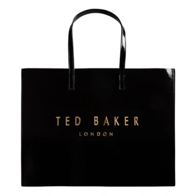 Design - The Ted Baker Crikon Crinkle Icon Bag XL impresses with its shiny finish and gold logo for a luxurious look. Functionality - Spacious main compartment offers plenty of space for your essentials, ideal for everyday life, shopping or leisure. Comfort - Two sturdy handles with approx. 20 inch length allows for comfortable carrying over the shoulder or in your hand. Quality - Made of durable polyurethane outer and polyester inside, with reinforced base and edges for stability. Style - The bag in classic black goes with any outfit and gives your appearance an elegant touch.