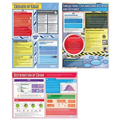 Crime Posters Set of 3 Sociology Laminated Gloss Paper measuring 850mm x 594mm (A1) Class Education Charts by Daydream