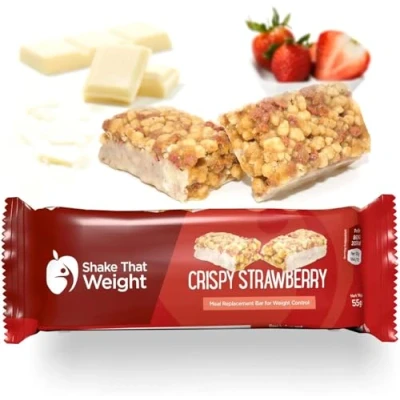 WEIGHT LOSS BARS — reach your weight loss goals with Shake That Weight’s low carb meal replacement bars, designed for rapid weight loss via the very low calorie diet (VLCD) principle. CRISPY STRAWBERRY — a pack of 10 great-tasting crispy strawberry bars that can be used as a meal replacement option in our diet plans — perfect if you want to mix and match with our delicious range of shakes. BALANCED DIET PLAN — low carb, high protein, rich in fibre and packed with the vital vitamins and minerals your body needs to ensure you stay healthy throughout your diet plan! REDUCE HUNGER PANGS — each delicious bar is high in protein which digests slowly to help reduce hunger pangs, keeping you on the right track to achieving your desired weight. GREAT TASTE — our bars feature a taste and texture so good that you don’t even feel like you are dieting — try cutting them into small pieces so you can enjoy them as healthy, nutritious treats!