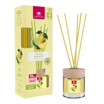 Cristalinas 35ml Citrus & Bergamot Air Fresheners Reed Diffuser Home Fragrance Lasts upto 8 weeks Room Sticks with Coloured Oil