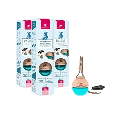 REVITALISING FRESHNESS- Experience Cristalinas Fresh Cologne car fresheners. Clean, uplifting scent with zesty bergamot top notes. A citrus body rejuvenates and uplifts. The musky, aromatic background adds an elegant touch. Feel invigorated with every drive. EASY TO USE, STYLISH DESIGN - Our elegant 2-in-1 sphere design can be used as a car vent air freshener or a hanging car freshener to revitalize your driving experience. LONG LASTING FRESHNESS - Prepare for an indulgent escape that lasts and lasts! Our car air fresheners deliver up to 8 weeks of continuous fragrance, ensuring your car is always enveloped in an irresistible aroma. SAY GOODBYE TO UNWANTED ODOURS- Our car freshener features powerful odour neutralising properties, eliminating unpleasant smells from your vehicle. Enjoy a revitalised driving experience with our odour neutralising car freshener. PACK OF 3 - Pack of 3 high quality Fresh Cologne scented car fresheners for men or women. Contains expertly blended natural essential oils to evenly fill your car with a constant fragrance.