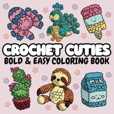 Crochet Cuties: A Bold and Easy Coloring Book for Adults Teens Featuring Cute Animals Designs