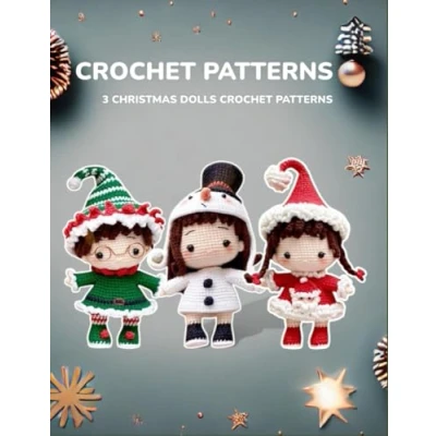 Crochet Patterns 3 Christmas Dolls Patterns: Amigurumi with Details Instruction 8.5x11in Cream White Paper