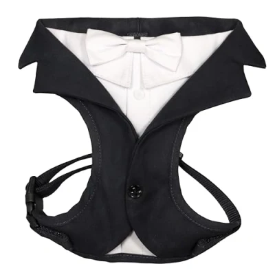 Box contents: The package contains a male dog harness in tuxedo. Colour: black. Size S Chest Girth:35-45cm/13.8-17.7" ELEGANT: Male dog harness with jacket, collar and bow tie ideal for ceremonies ADJUSTABLE AND BREATHABLE: Harness with adjustable buckle and easy closure. SUITABLE FOR EVERYONE: The adjustable buckle makes the garment suitable for dogs of all sizes and breeds: choose the correct size from the ones available, measuring your dog with a tape measure IDEAL FOR CEREMONIES: Dog collar with elegant decorative bow, when used with the matching leash you get a special look for weddings, christenings, ceremonies and parties.
