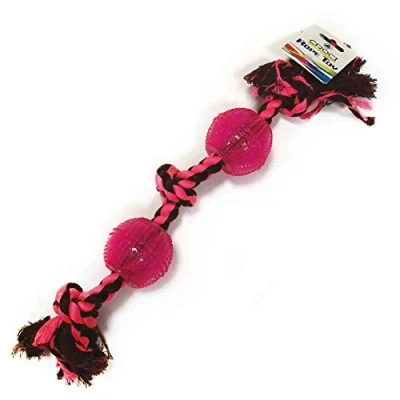 dog toy made of resistant rope and TPR rubber balls The TPR is a thermoplastic rubber, ultra-resistant, non-deformable and floatign Perfect for playing with your dog Dimension 48 cm fuchsia color