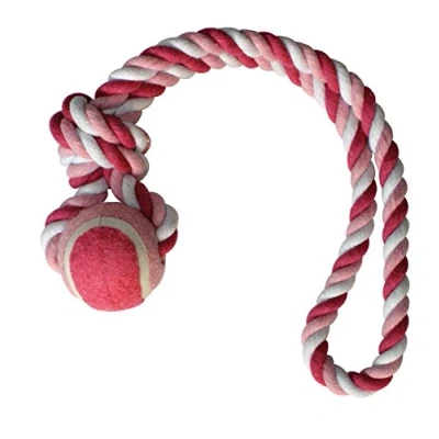 Dog toy made of woven fibers Strong, durable and colorful. The cotton bone is a useful tool to clean the dog's teeth in a playful way Fun game for playing with your dog With the ball attached you can play on launch and carry game with him!